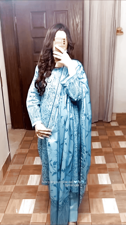3 Piece Unstitched Printed Cotton Premier Lawn Suit With Printed Dupatta